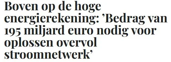 We lopen op allerlei manieren tegen de grenzen van de elektrificatie van onze energiebalans aan, concludeert Rob de Vos van klimaatgek.nl. Misschien dat er nog enige verschuiving mogelijk is, maar dat kan alleen tegen enorme kosten, zie ook de 195 miljard euro die nodig blijkt om de congestie op ons stroomnet aan te pakken.