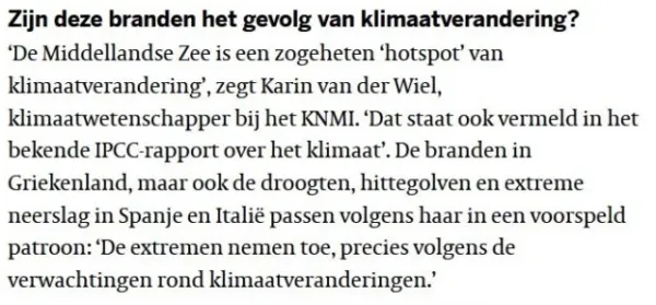 Jean-Pierre Geelen schreef op 25 juli 2023 een groot artikel over de Mediterrane bosbranden. De toon van het artikel was gematigd. Dat werd wat anders toen Geelen klimaatwetenschapper Karin van der Wiel van het KNMI interviewde: