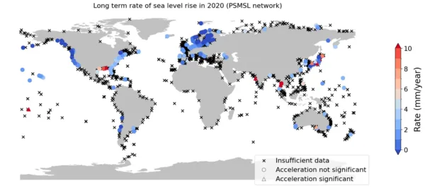 Een analyse van ruim 200 getijdenstations verspreid over de wereld toont aan dat van een wereldwijde versnelling van de zeespiegelstijging geen sprake is.