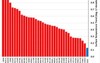 Fig.1 Bron: DoE report 2025 Bovenstaande grafiek is afkomstig uit het recente klimaatrapport dat het Amerikaanse Ministerie van Energie heeft laten maken, geschreven door Steven Koonin, Judith Curry, John Christy, Roy Spencer en Ross McKitrick. De grafiek toont de opwarmingstrends voor de zomermaanden (juni, juli, augustus) van 1973-2022 voor de Corn Belt, een [...]