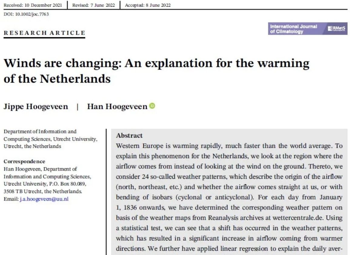 Een nieuwe studie toont dat CO₂ nauwelijks oorzaak is van de opwarming in Nederland, en dat veranderde luchtcirculatie de dominante factor vormt. De resultaten zetten gangbare aannames over de rol van broeikasgassen onder druk.