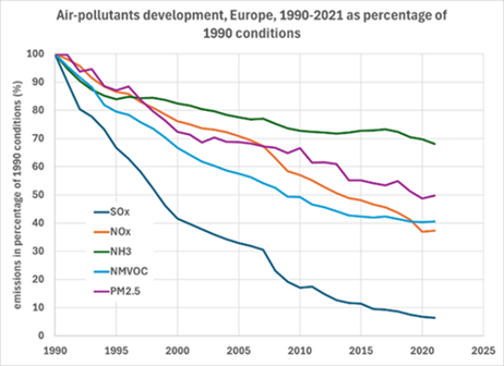 De globale stralingsflux betreft de kortgolvige straling van de zon (golflengte 0,3-3 μm), zowel direct als diffuus. Deze flux is in De Bilt in de periode 1958-2022 op jaarbasis (figuur 3) sinds de eeuwwisseling met ongeveer 18 W/m2 gestegen, terwijl op maandbasis de toename in de maanden april t/m juli zelfs meer dan 30 W/m2 was. In de atmosfeer wordt zonlicht bij onbewolkte lucht geabsorbeerd en verstrooid door aerosolen en waterdamp; dit neemt bij bewolkte lucht verder af met de bewolkingsgraad. Satellietwaarnemingen laten zien dat de bewolkingsgraad sinds het midden van de jaren negentig is afgenomen; dit wordt bevestigd door een gestage toename van de relatieve zonneschijnduur. Analyse van wolkeloze dagen(1), (2) toont aan dat de aerosolen-concentratie voor De Bilt zodanig is afgenomen (zie ook figuur 4) dat dit ongeveer de helft van de verhoging van de stralingsflux in de lente- en zomermaanden kan verklaren. Minder aerosolen betekent geringere wolkenvorming en een verdere toename van de globale stralingsflux.