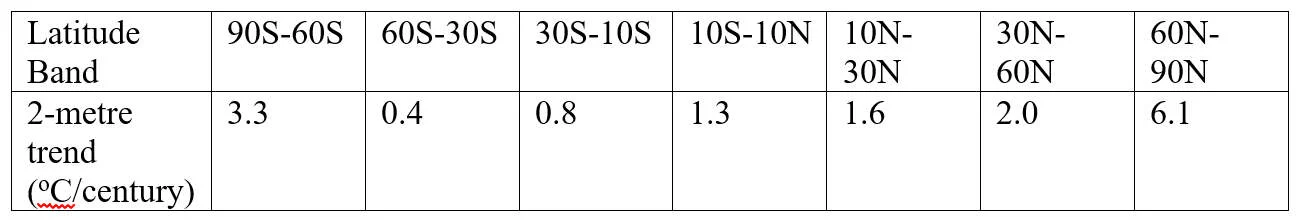 De tweede openbaring is dat de recente opwarming niet wereldwijd uniform is geweest. Het veelvuldige gebruik door het IPCC van de mondiale gemiddelde temperatuur als index voor klimaatverandering, is misleidend. Op de breedtegraden van de Zuidelijke Oceaan was er in wezen geen opwarming. De opwarmingssnelheid boven het equatoriale oceaanoppervlak bedroeg minder dan 1 °C per eeuw. De opwarming was het grootst boven de bevroren poolgebieden. De snelste opwarming, met bijna 8 °C per eeuw, vond plaats boven de Noordpool tijdens de donkere wintermaanden. Dit staat in contrast met een opwarmingssnelheid van slechts ongeveer 2 °C per eeuw tijdens de zonnige zomermaanden.