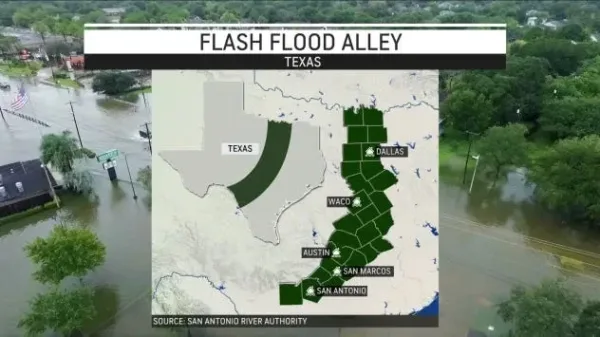 Regelmatig voorkomende overstromingen hebben ertoe geleid dat ambtenaren een deel van de staat de bijnaam ‘Flash Flood Alley’ hebben gegeven, een geografisch gebied dat door veel van de grote stedelijke gebieden van Texas loopt, waaronder San Antonio, Dallas, Austin en Waco.