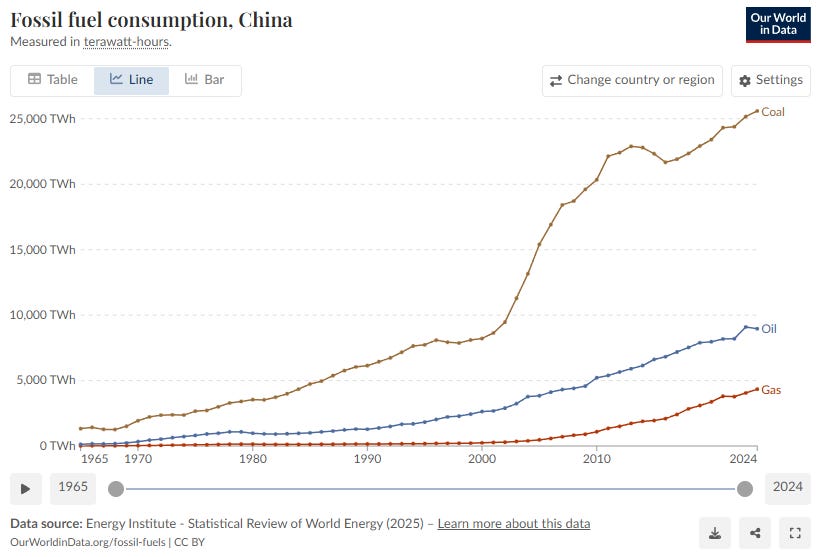 Ze verbranden nu meer steenkool dan de rest van de wereld samen, exporteren de groene technologie, houden de prijzen laag en zien hoe het Westen zichzelf de-industrialiseert. Ik heb de definitieve analyse hierover geschreven in: