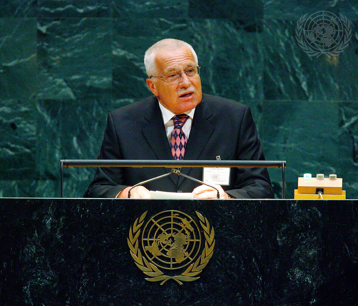 Václav Klaus tijdens zijn speech bij de VN (Bron: media.un.org)