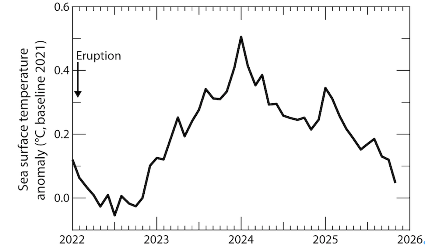 - De enige bekende buitengewone factor is de uitbarsting van Hunga Tonga