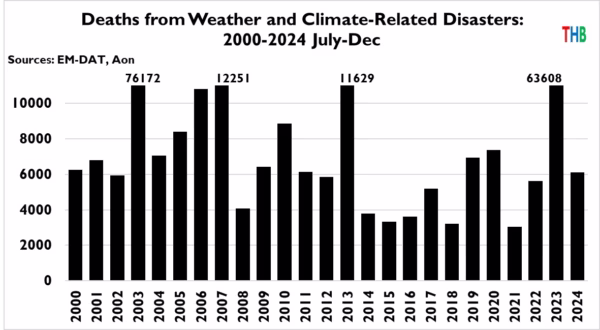 Enerzijds zijn ~2.200 doden veel en is elk verlies van mensenlevens tragisch. Aan de andere kant, in de context van historische verliezen gerelateerd aan extreme weersomstandigheden, op een planeet met 8,2 miljard mensen, is ~2.200 doden ongelooflijk laag. Historisch laag, in feite.