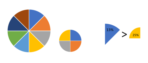 Omdat het lastig te begrijpen blijft wat een verschuiving in de fractie nu precies inhoudt, maakt Kent nog een inzichtelijke vergelijking met pizza’s.
