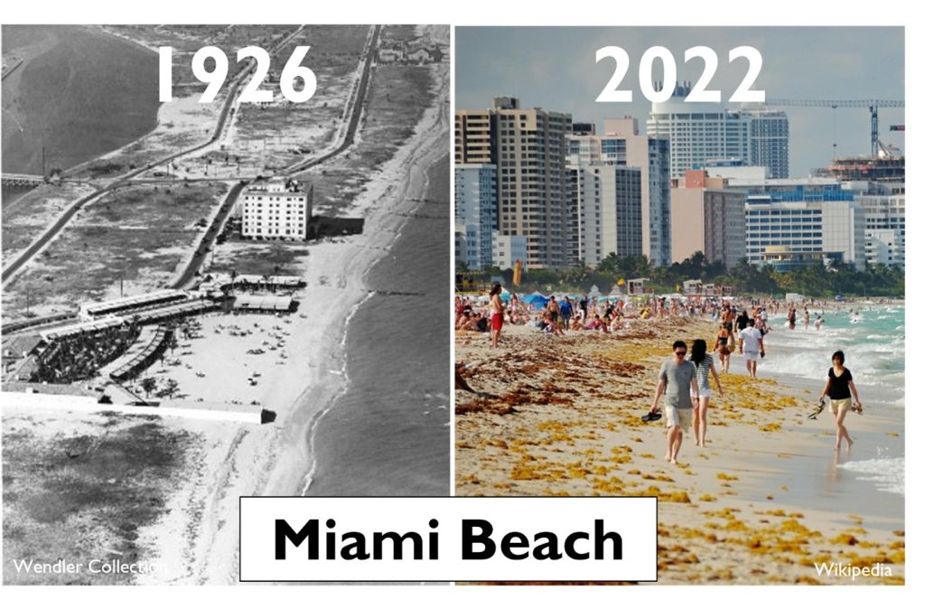 In een Substack-bericht uit 2022 liet Pielke zien hoezeer Miami Beach in iets minder dan 100 jaar is veranderd en hoeveel meer infrastructuur er nu is.