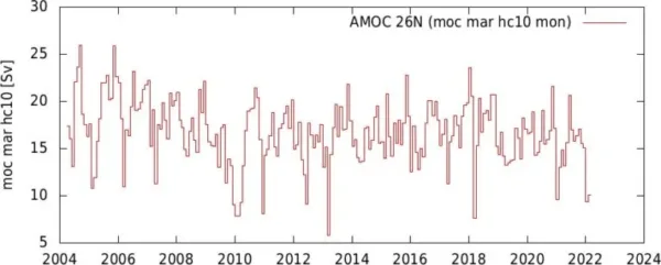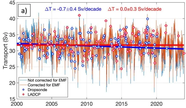 De onderzoekers stellen daarom dat de veranderingen in de FC-kabeltransportdata een herziening noodzakelijk maken van de AMOC data op 26,5°NB sinds 2004.