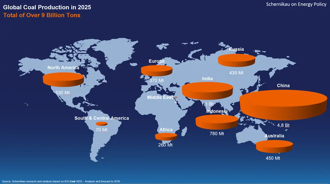 Figuur 2: Wereldwijde steenkoolproductie. Bron: Schernikau Research