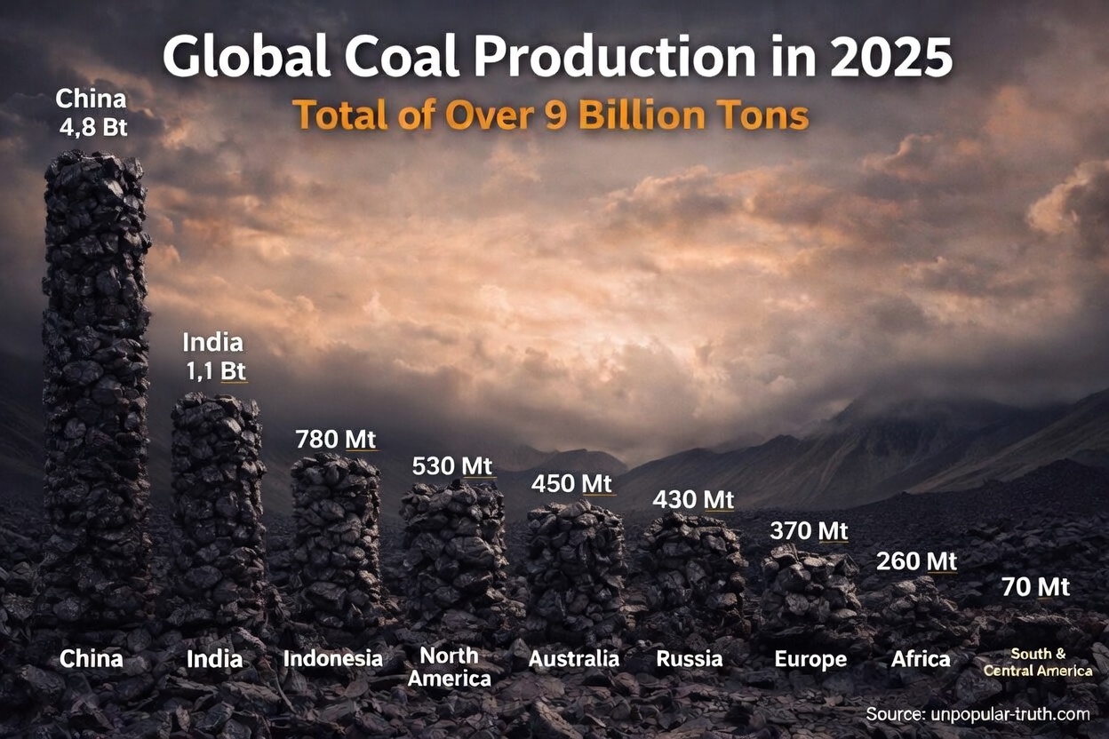 De verrassende realiteit over elektriciteit is dat steenkool nog steeds meer dan een derde van de wereldwijde elektriciteit produceert… niet omdat steenkool de trendy keuze is, maar omdat het werkt, het is “democratisch” en zo ontzettend goedkoop!