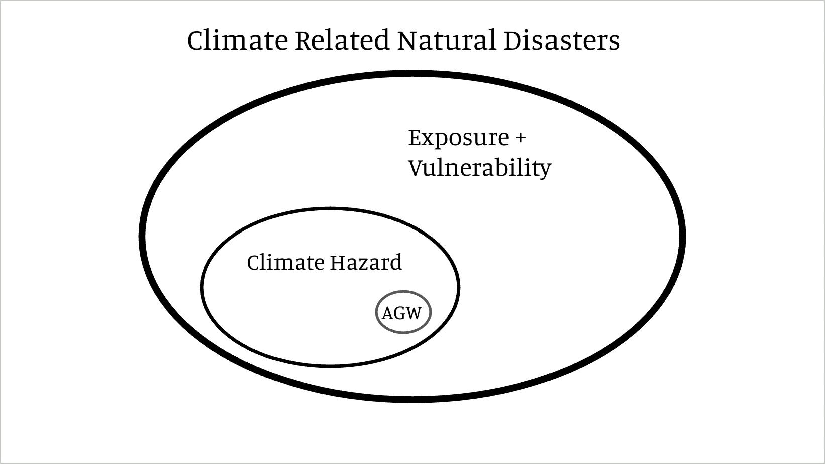 Deze fundamentele fysische realiteit kan verloren gaan in de enorme hoeveelheid literatuur over klimaateffecten, met zijn verwarrende terminologie en bevindingen rond begrippen als attributie en detectie. Discussies over de vraag of antropogene klimaatverandering enige invloed heeft gehad op verschillende soorten extreme gebeurtenissen raken al snel verward met discussies over de vraag of klimaatverandering een belangrijke factor is, laat staan de belangrijkste factor in extreme gebeurtenissen.
