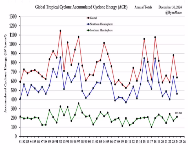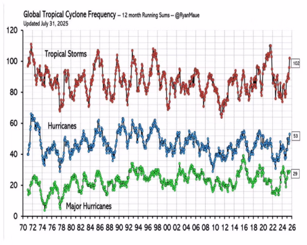 Naar mijn opinie laat het DoE-rapport cruciale zaken over tropische orkanen helemaal niet onvermeld, die worden juist uitgebreid in het rapport besproken. Omdat ik geen zin heb om alles dat in het rapport staat te herhalen, volsta ik met het tonen van de meest recente grafieken over orkanen. De grafieken spreken voor zich: