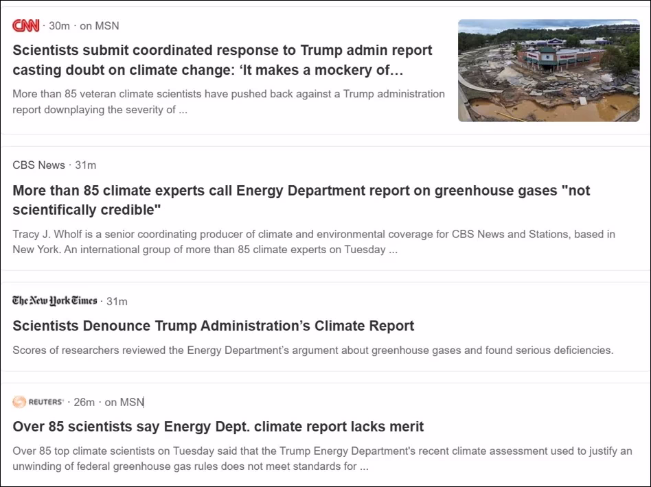 Het tegenrapport (DK25) onder leiding van Andrew Dessler van Texas A&M en Robert Kopp van Rutgers bevat bijdragen van 85 auteurs (voornamelijk academici uit verschillende disciplines) en beslaat 459 pagina’s. De auteurs verdienen lof voor hun snelle, inhoudelijke reactie. Wetenschap is beter wanneer discussie en debat plaatsvinden. Dessler, die het DOE-rapport ‘onzin’ noemt, trekt zich daar niets van aan als hij beweert dat er in het DOE-rapport absoluut niets wetenschappelijk accuraat is: