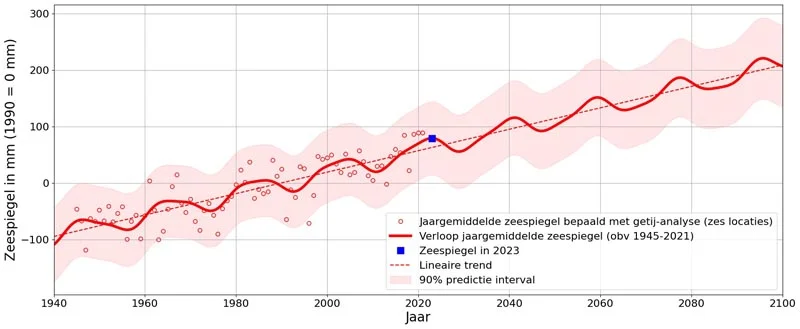 Voor waterland Nederland zijn ontwikkelingen van de zeespiegel uiteraard van existentieel belang. Kennisinstituut Deltares publiceert iedere vijf jaar een rapport over de staat van de zeespiegel. In het meest recente rapport wordt voor het eerst gesproken van een versnelling van de zeespiegelstijging langs de Nederlandse kust sinds 1993. Deze versnelling is pas te ‘zien’ nadat gecorrigeerd is voor een windeffect langs de Nederlandse kust.