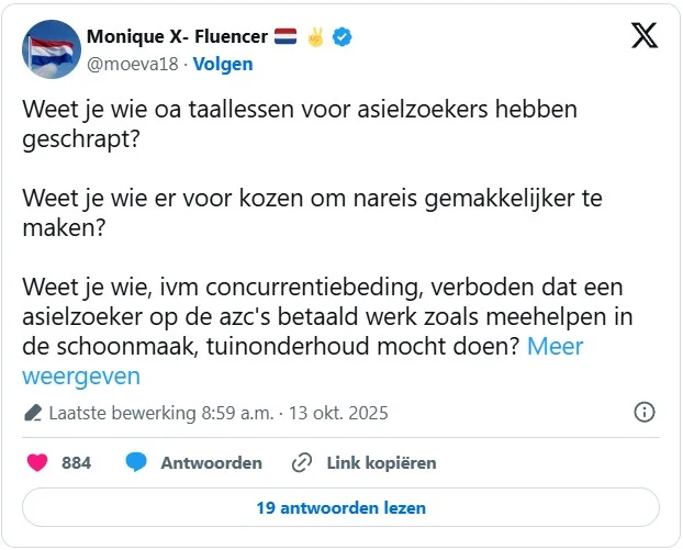 En dan zijn er nog de échte asielzoekers, zoals oorlogsvluchtelingen. Die verdienen alle aandacht en behoren de enige bewoners te zijn van onze AZC’s. Zolang hun procedure niet is afgehandeld, dienen ze zich nuttig te maken door verplicht aan het werk te gaan voor allerlei schoonmaak- en onderhoudswerkzaamheden in het AZC waar ze verblijven. En als ze geregistreerd staan als erkend asielzoeker, dienen ze te gaan werken buiten het AZC als tijdelijke arbeidsmigrant. Het nutteloos rondhangen is vragen om moeilijkheden.